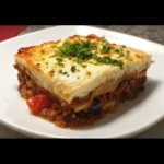 - THE MOST IMPORTANT STEP: REST! Remove the Moussaka from the oven and let it rest for at least 30-45 minutes before cutting and serving. This is non-negotiable! It allows the layers to set, so you can cut clean, beautiful squares that hold their shape. Cutting into it too early will result in a soupy, delicious mess.