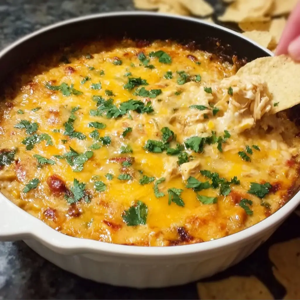 Okay, let’s dive into crafting an amazing, SEO-friendly article for this Chicken Chili Dip. This dip is an absolute game-changer, and I remember the first time I made it for a family get-together. It was a chilly autumn evening, and the aroma wafting from the oven was enough to draw everyone into the kitchen. The moment it came out, bubbly and golden, it was surrounded. My brother-in-law, usually a man of few words when it comes to food praise, declared it “the best darn dip” he’d ever had. My kids, who can be picky, devoured it with tortilla chips, their faces smeared with cheesy goodness. It disappeared in record time, and ever since, it’s become a non-negotiable staple for game days, potlucks, or frankly, any excuse we can find to make it. The creamy texture from the cream cheese, the savory punch of chili, the hearty chicken, and that irresistible melted cheese topping – it’s a symphony of flavors and textures that just works, every single time. It’s comforting, incredibly easy to whip up, and guaranteed to be a crowd-pleaser.