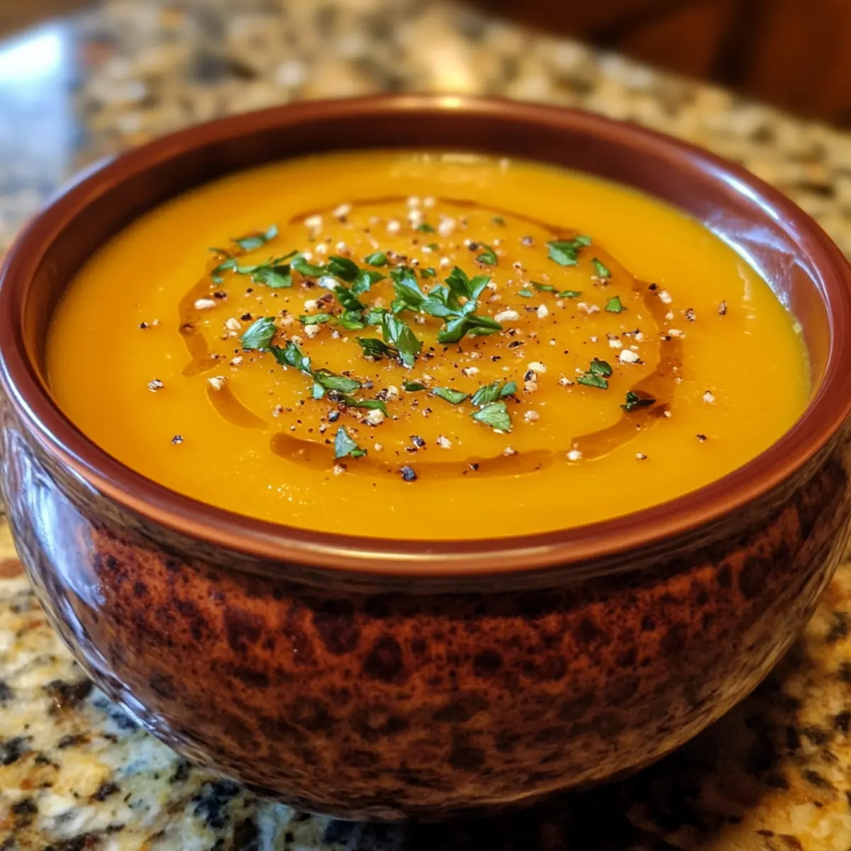 - Ladle the beautifully creamy soup into warm bowls, garnish with fresh parsley or toasted pumpkin seeds, add a swirl of coconut milk, and serve immediately while hot.
