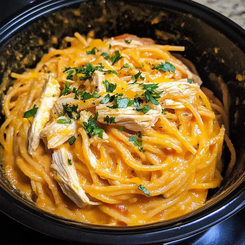 This Crock Pot Chicken Spaghetti has become an absolute lifesaver in our household, a true champion of weeknight dinners and a guaranteed crowd-pleaser for potlucks. The first time I made it, my family was a bit skeptical – spaghetti in a slow cooker? But the aroma that filled the house after a few hours was enough to win them over before they even took a bite. The chicken was unbelievably tender, practically melting into the creamy, cheesy, tomato-kissed sauce. The kids devoured it, my husband asked for seconds (and then thirds!), and I was thrilled with how incredibly easy it was to throw together. It’s that perfect blend of comforting, hearty, and packed with flavor, all with minimal effort. Now, it’s a regular on our meal rotation, especially on those busy days when I need a delicious meal waiting for us without spending hours in the kitchen.