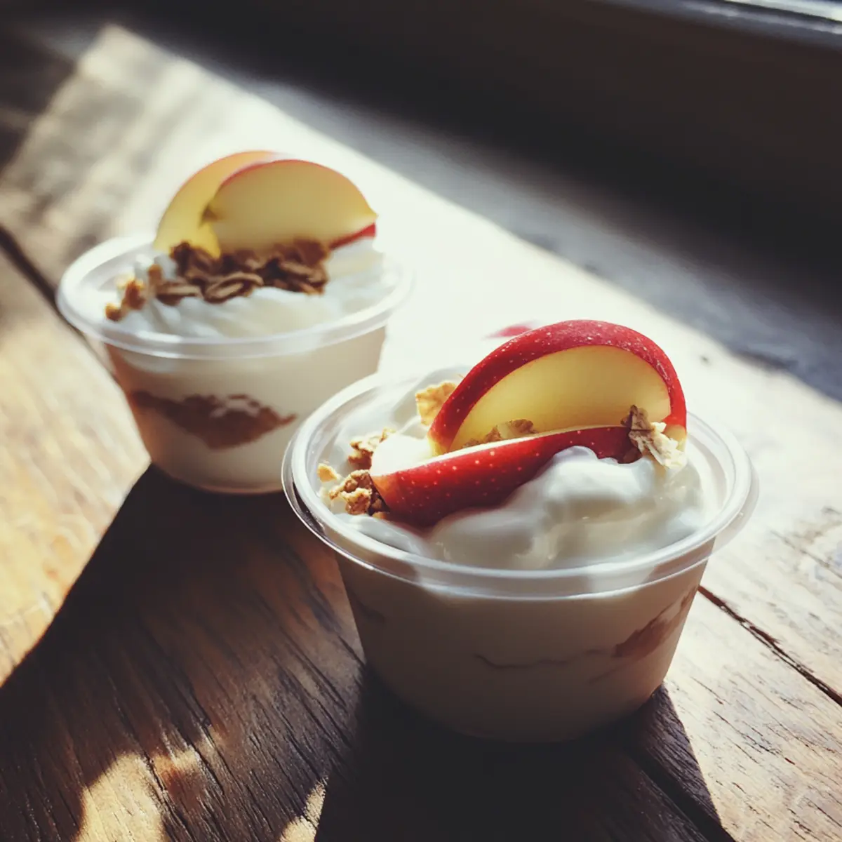 - Layer Ingredients: Spoon a handful of apple slices into each cup, then top with yogurt mix.