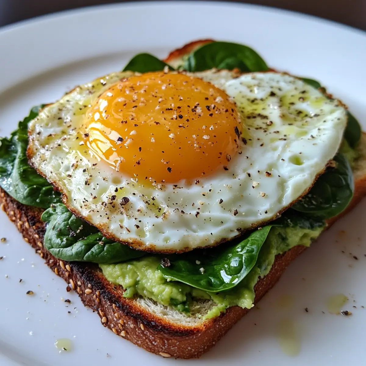 - Assemble the toast by spreading avocado evenly, layering sautéed spinach, and gently topping with your cooked egg for a creamy, vibrant breakfast treat.
