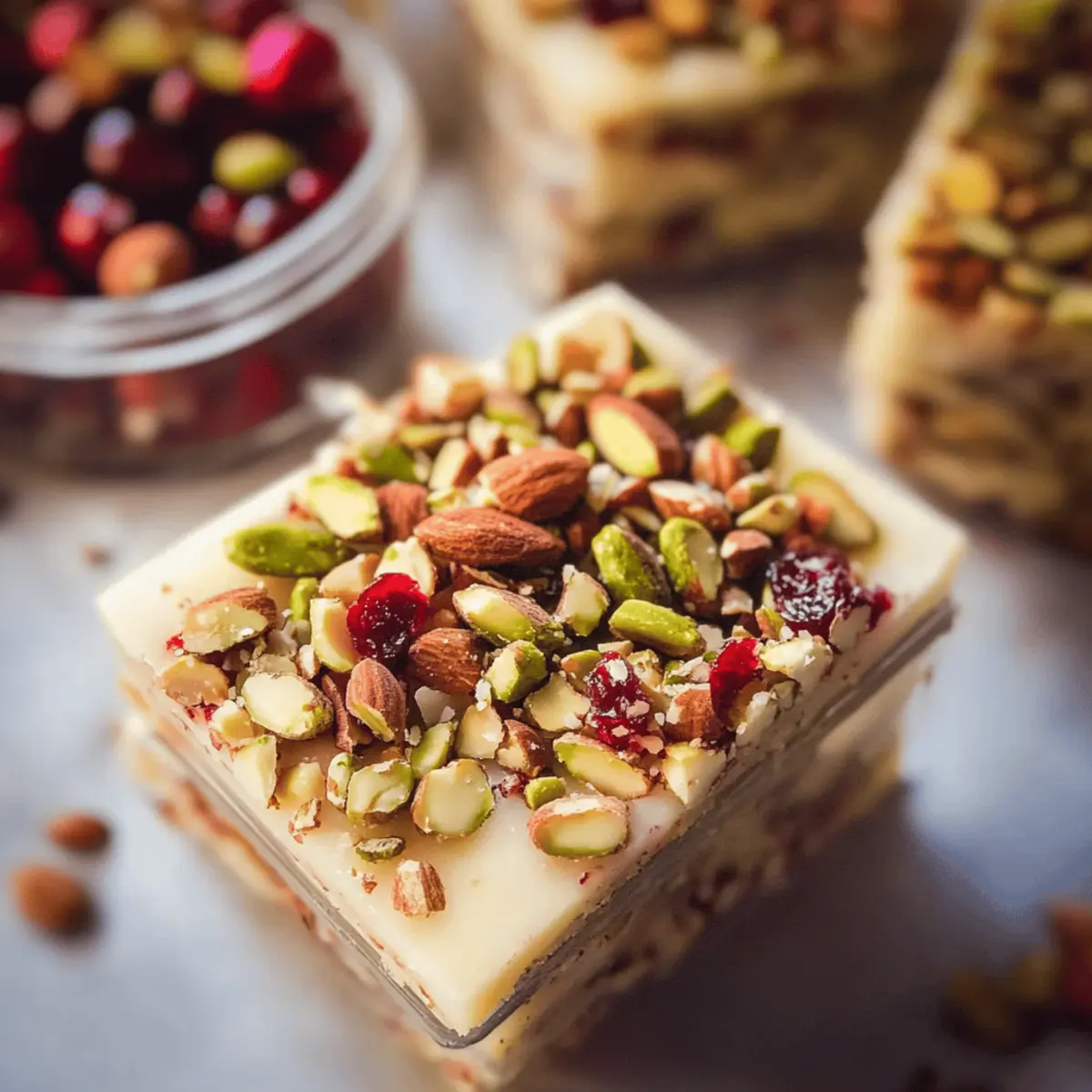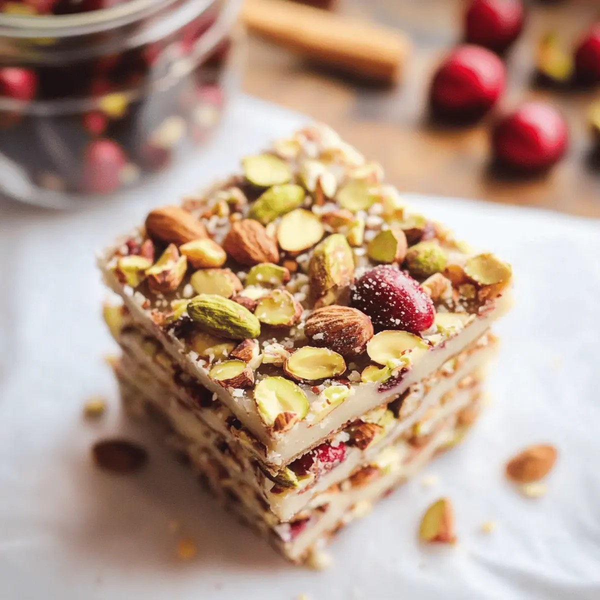 Festive Flavors burst with tart cranberries and crunchy pistachios in every bite. Effortless Preparation means you’ll have a stunning treat ready without fuss or stress. Vibrant Presentation adds a pop of color perfect for holiday gifting or table display. Versatile Snacking lets you enjoy it solo or share at parties. Sweet-Tart Balance keeps each piece delightfully satisfying and never too sweet.