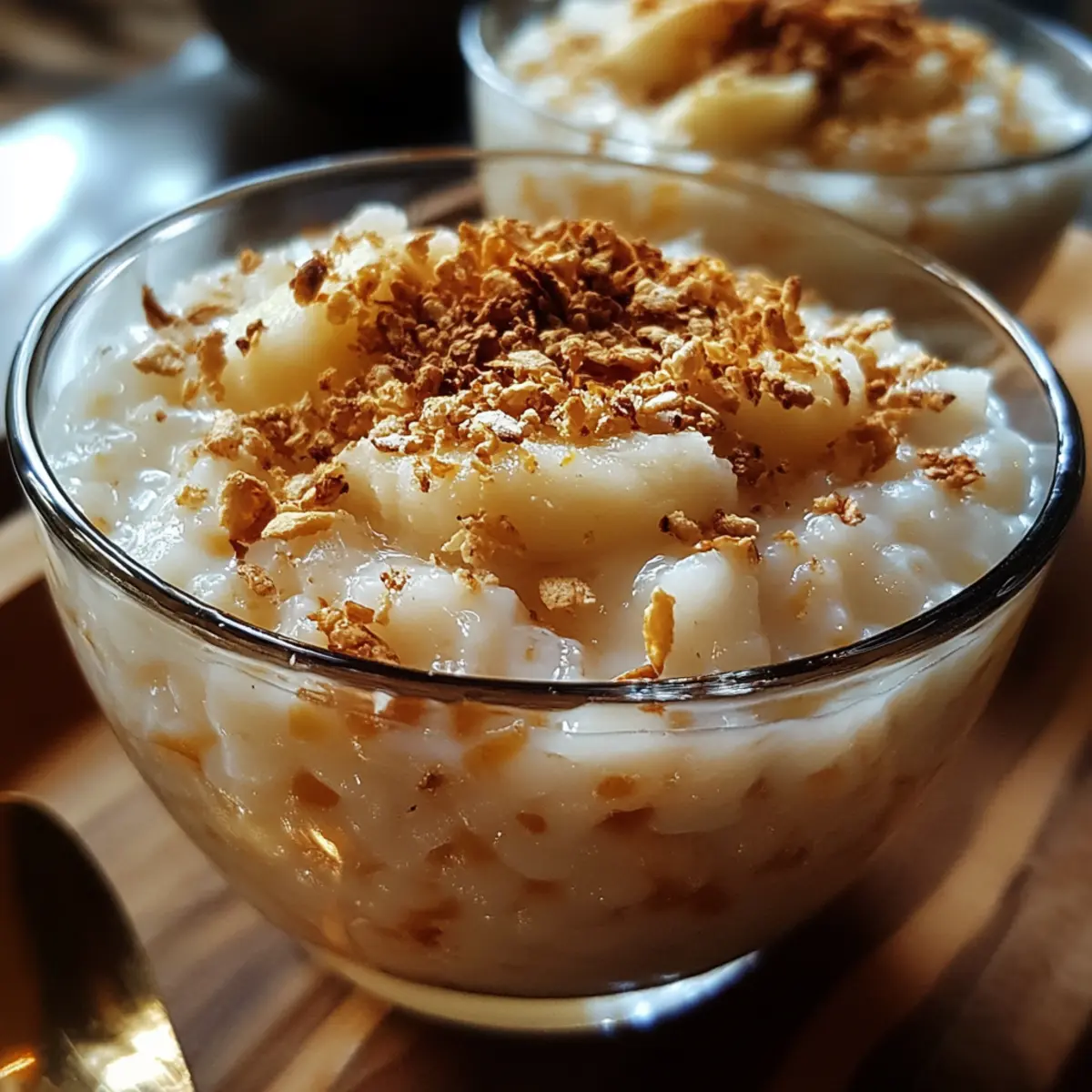 Garnish before serving: Top chilled bowls with toasted coconut flakes or chopped nuts, adding both crunch and a nutty aroma that complements the creamy dessert beautifully.