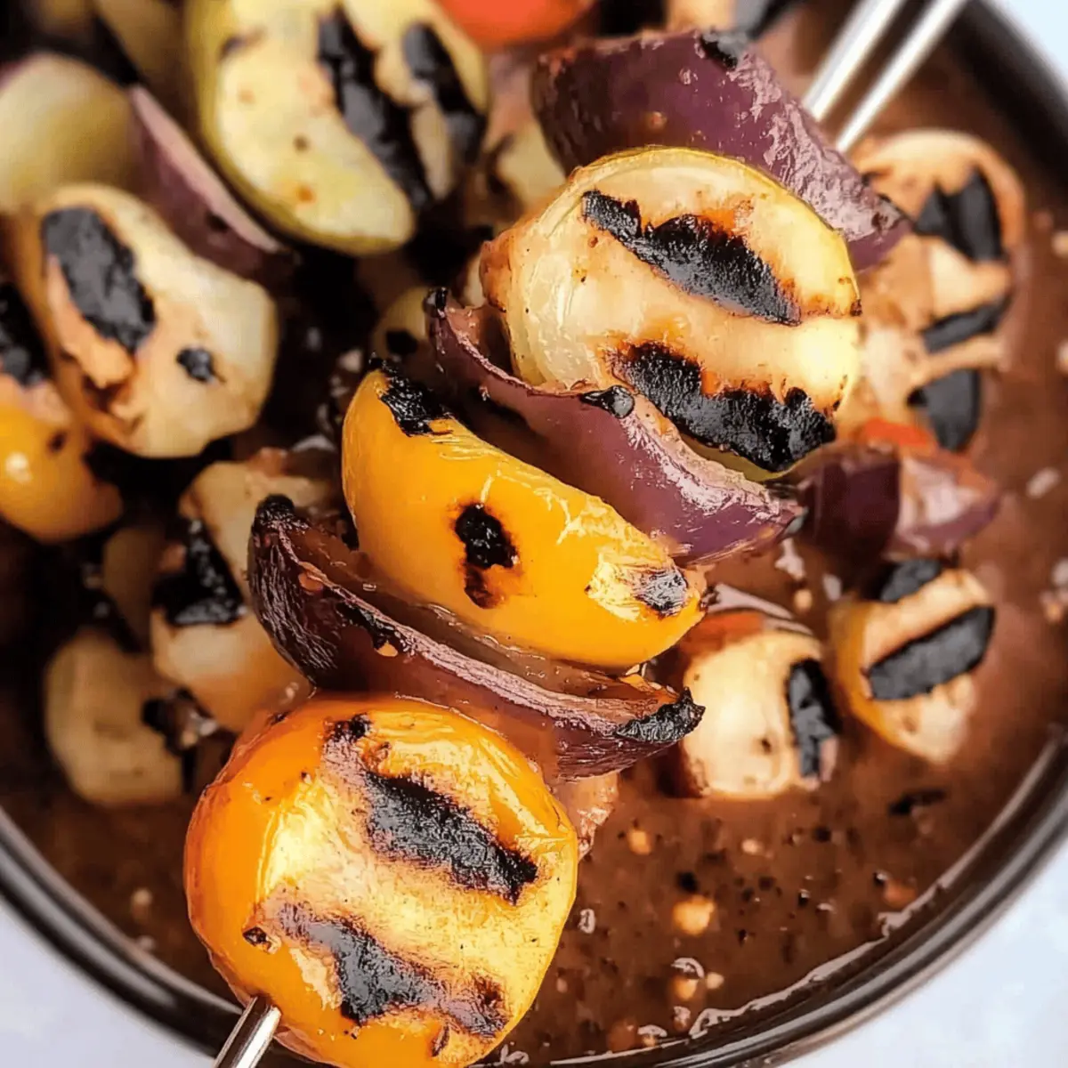 Sweet Twist: Thread pineapple chunks or peaches alongside the veggies for a touch of sweetness. Grilled fruit adds a delightful caramelized flavor that’s simply irresistible.