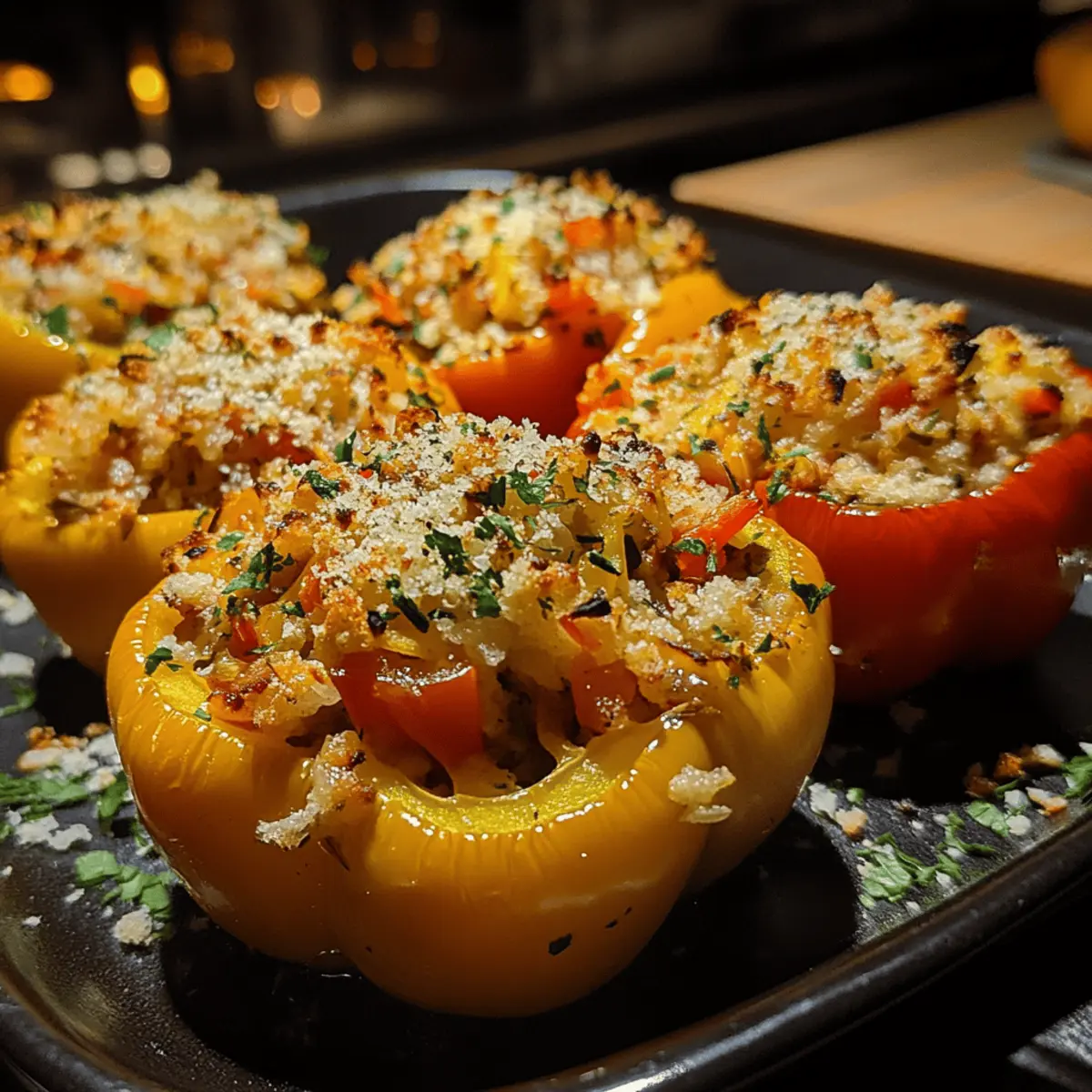 • Bake covered then uncovered: Start with foil to steam the peppers tender, then uncover to get that lovely roasted finish without drying out the filling.