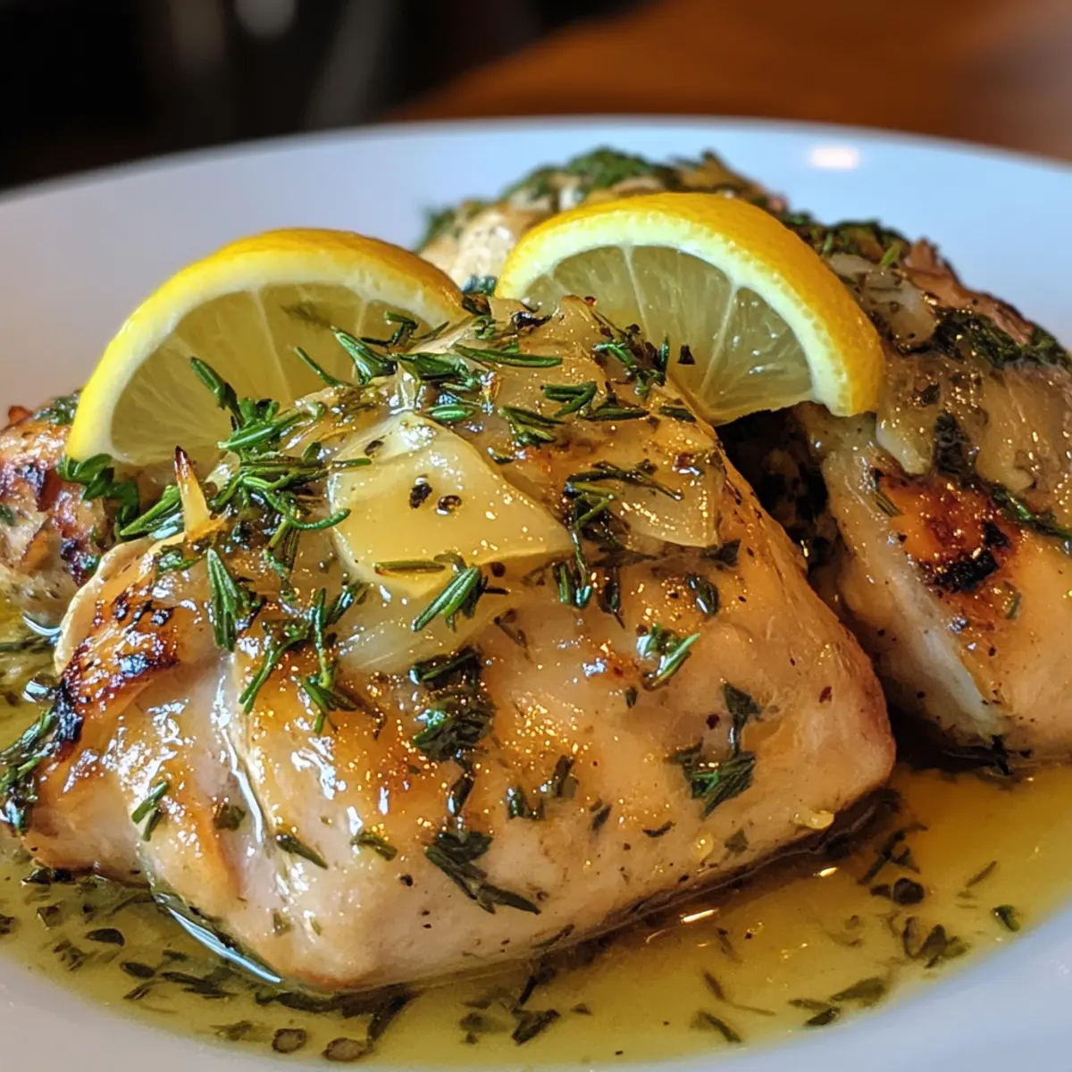 Optional: Serve with lemon wedges and fresh thyme sprigs for a bright, elegant finish.