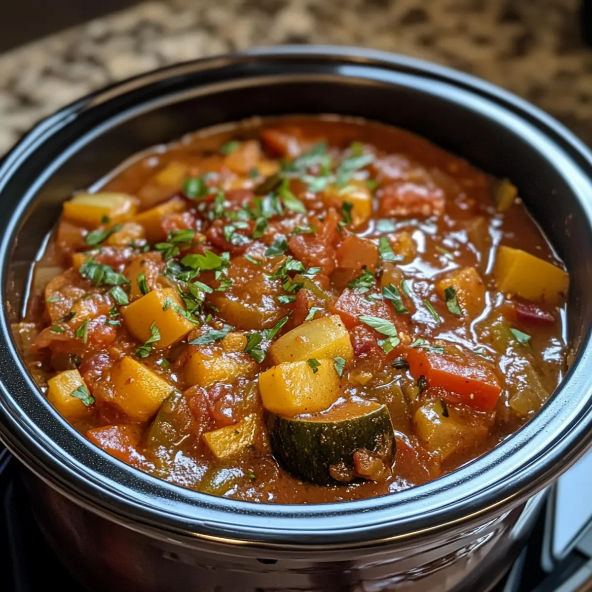 Simplicity takes center stage—just toss your fresh veggies in the slow cooker and let it work its magic. Deep, layered flavors develop gradually, creating a rich, comforting taste that’s anything but ordinary. Versatility shines, serving perfectly as a main or side. Plus, it’s a nutritious, veggie-packed meal that satisfies cravings without heaviness. Lastly, the hands-off cooking means more time for you and less stress in the kitchen!