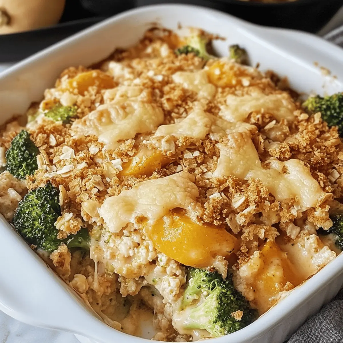 Roasted Turkey: Juicy and perfectly seasoned turkey is the star of the show, providing a savory balance to the creamy casserole.