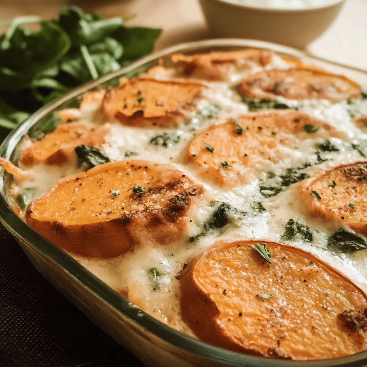 Easy Thanksgiving Sweet Potato and Spinach Gratin with a Creamy Twist