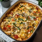 This Greek Chicken Casserole is more than just a meal; it’s an experience. It’s a harmonious blend of classic Mediterranean ingredients that come together in a single baking dish, minimizing cleanup while maximizing flavor. The beauty of this dish lies in its simplicity and the robust, fresh taste that each component brings. Imagine tender, juicy chicken pieces marinated in a bright concoction of lemon, garlic, and oregano, nestled amongst colorful bell peppers, sweet cherry tomatoes, piquant red onions, and salty Kalamata olives, all crowned with crumbles of creamy feta cheese that melt and slightly crisp in the oven. It’s a feast for the eyes as much as it is for the palate. Perfect for busy weeknights when you crave something special without the fuss, or for a weekend gathering where you want to impress your guests with minimal effort, this casserole is a true culinary champion.