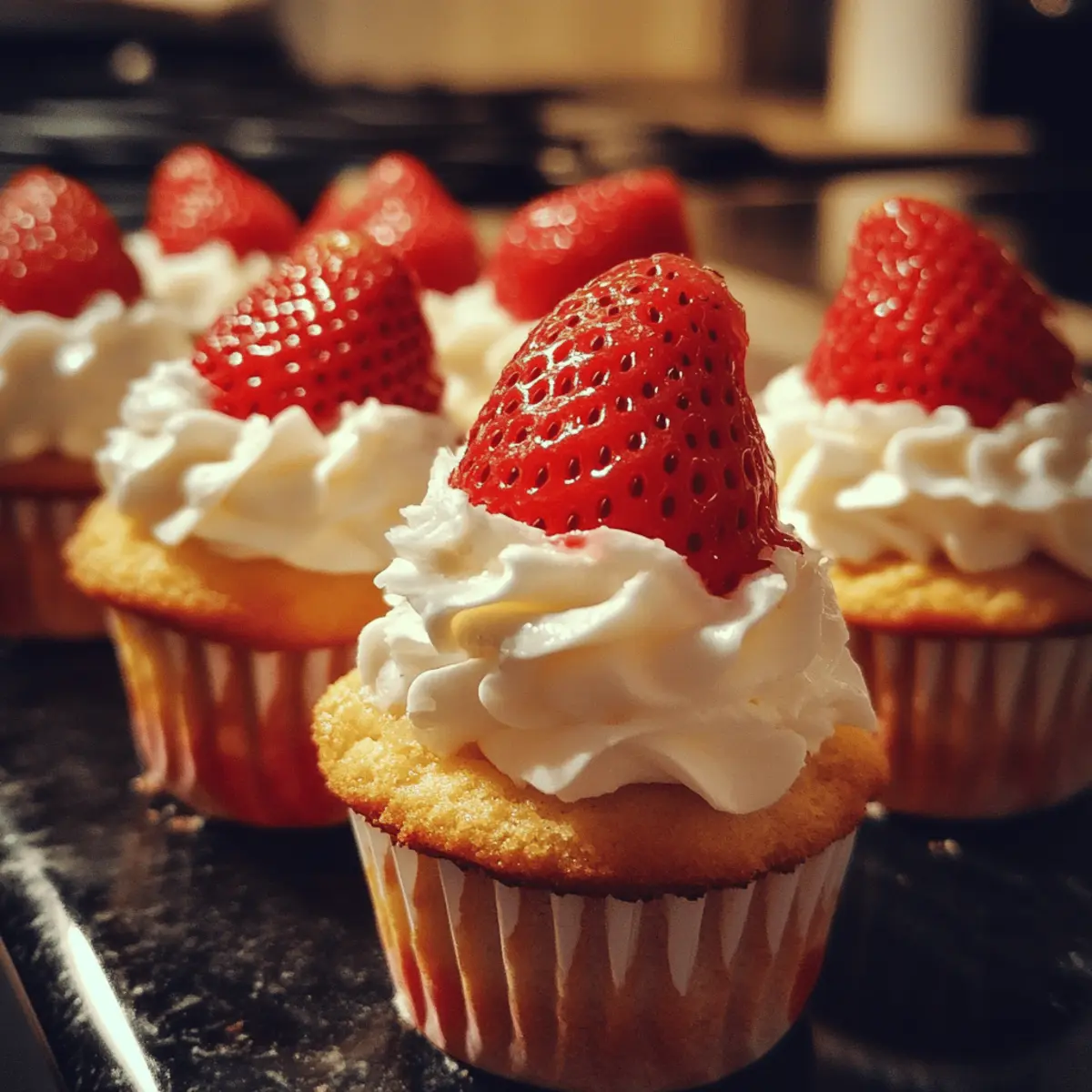 - Portion evenly: Fill muffin cups two-thirds full to ensure even baking and perfectly sized cake bases for layering with strawberries and cream.