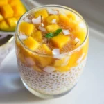 - Portion and Garnish: Ladle the Mango Sago with Coconut Jelly into individual serving bowls, glasses, or small jars.