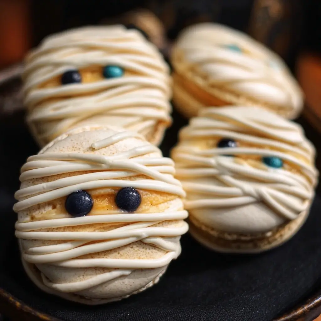 Of all the treats I’ve made for our annual Halloween party, none have ever vanished from the dessert table quite like these Mummy Macarons. The first time I presented them, I watched with a baker’s quiet pride as both kids and adults hovered, almost hesitant to disturb the platter. The children were captivated by the googly eyes peeking out from the “bandages,” while the adults were impressed by the delicate, elegant form of the French macaron itself. My husband, who usually bypasses fancy desserts for a simple brownie, even came back for a third, remarking, “They’re not just cute, they’re actually incredible.” That’s the magic of this recipe: it’s a show-stopping, spooky centerpiece that delivers a truly sophisticated, delicious bite. The crisp shell gives way to a chewy almond interior, all held together by a creamy white chocolate ganache. They are the perfect blend of playful Halloween fun and patisserie-level perfection, and I’m so excited to share the detailed process with you so you can bring these frightfully delightful mummies to life in your own kitchen.