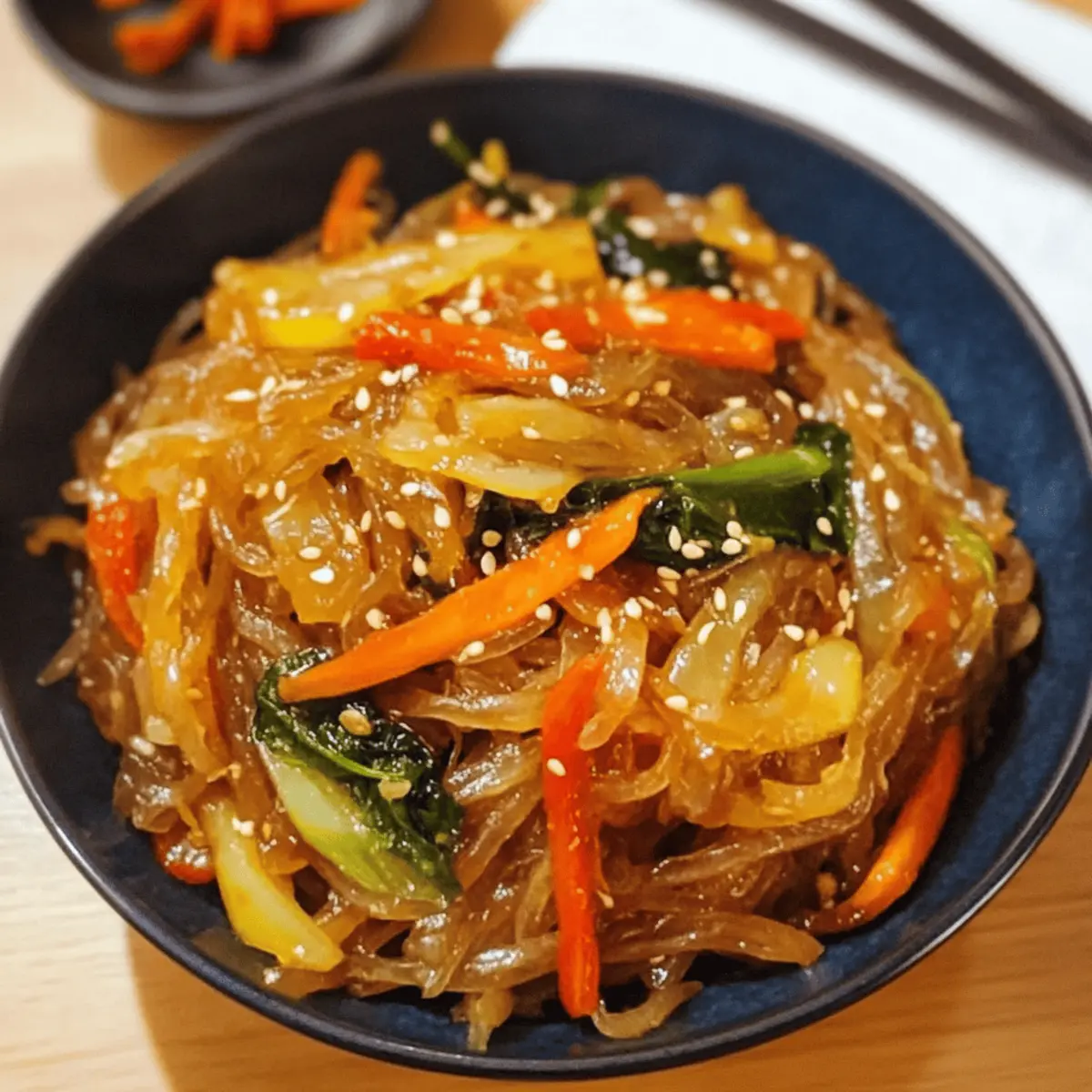 Versatile and vibrant: This Japchae recipe bursts with colorful veggies and bold spices that awaken your palate. Quick and easy: Ready in under 30 minutes, perfect for busy weeknights. Wholesome plant-based: A nutritious way to enjoy traditional flavors without any animal products. Crowd-pleaser: Its spicy kick and comforting noodles make it an instant favorite for vegans and non-vegans alike. Elevate your meals: Break free from boring fast food with this exciting, homemade dish everyone will love!
