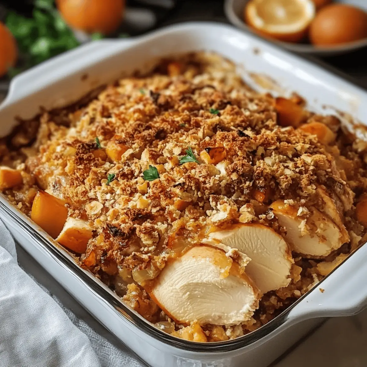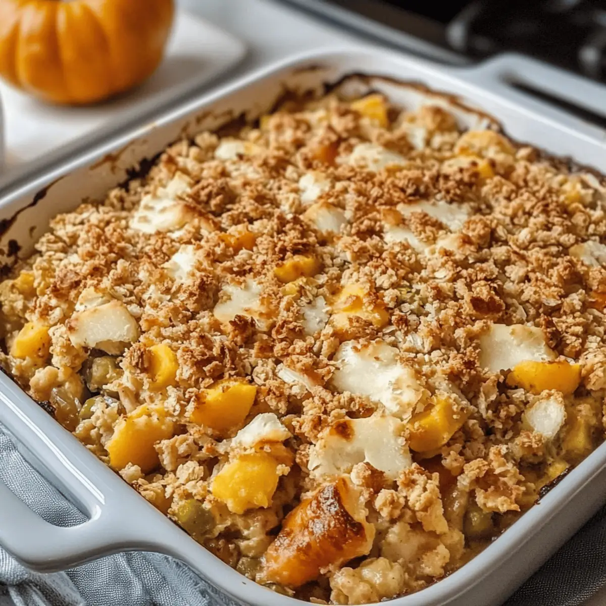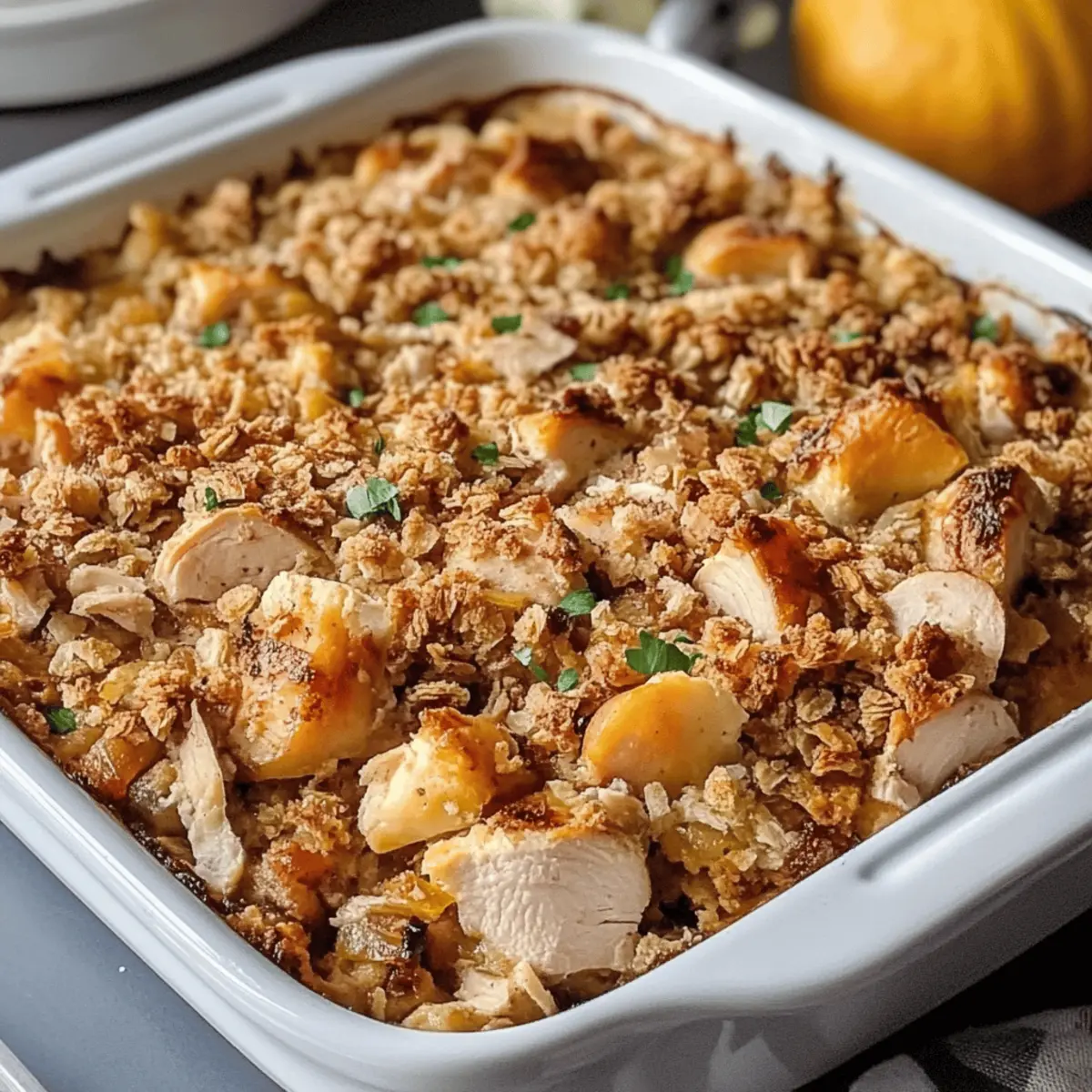 - Top: Evenly sprinkle the buttery onion-crumb mixture over the casserole base, covering every inch for a golden, crisp topping that contrasts perfectly with the creamy filling.