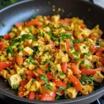 - Cook the Tofu Scramble: Continue to cook the mixture for 5-7 minutes, stirring occasionally. The tofu will absorb the spices and develop a lovely golden color.